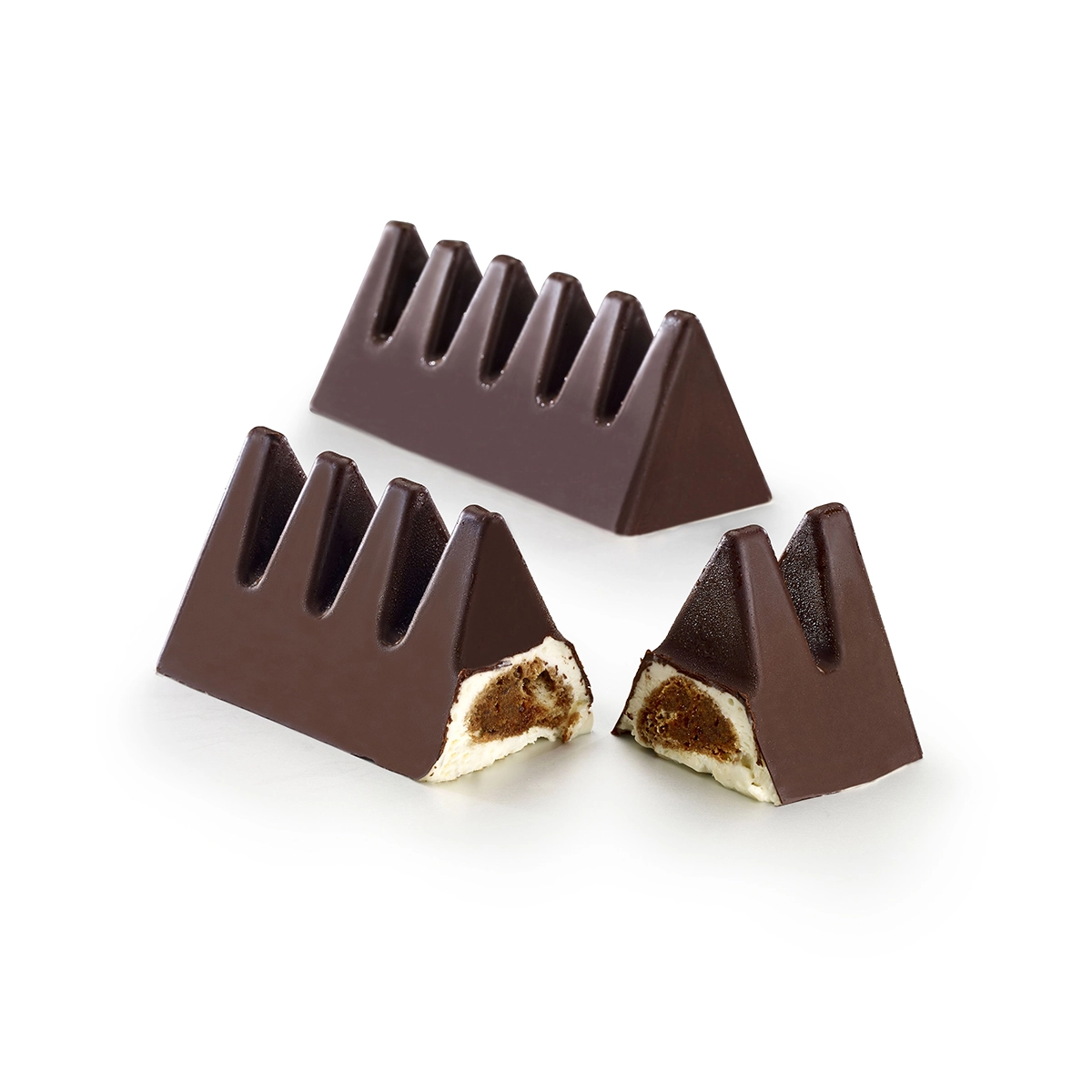 Tiramisú cubierto de chocolate. Bizcocho melindro empapado con licor de café, mousse de mascarpone, cobertura de chocolate. ±14 x 5,5 x 5 cm