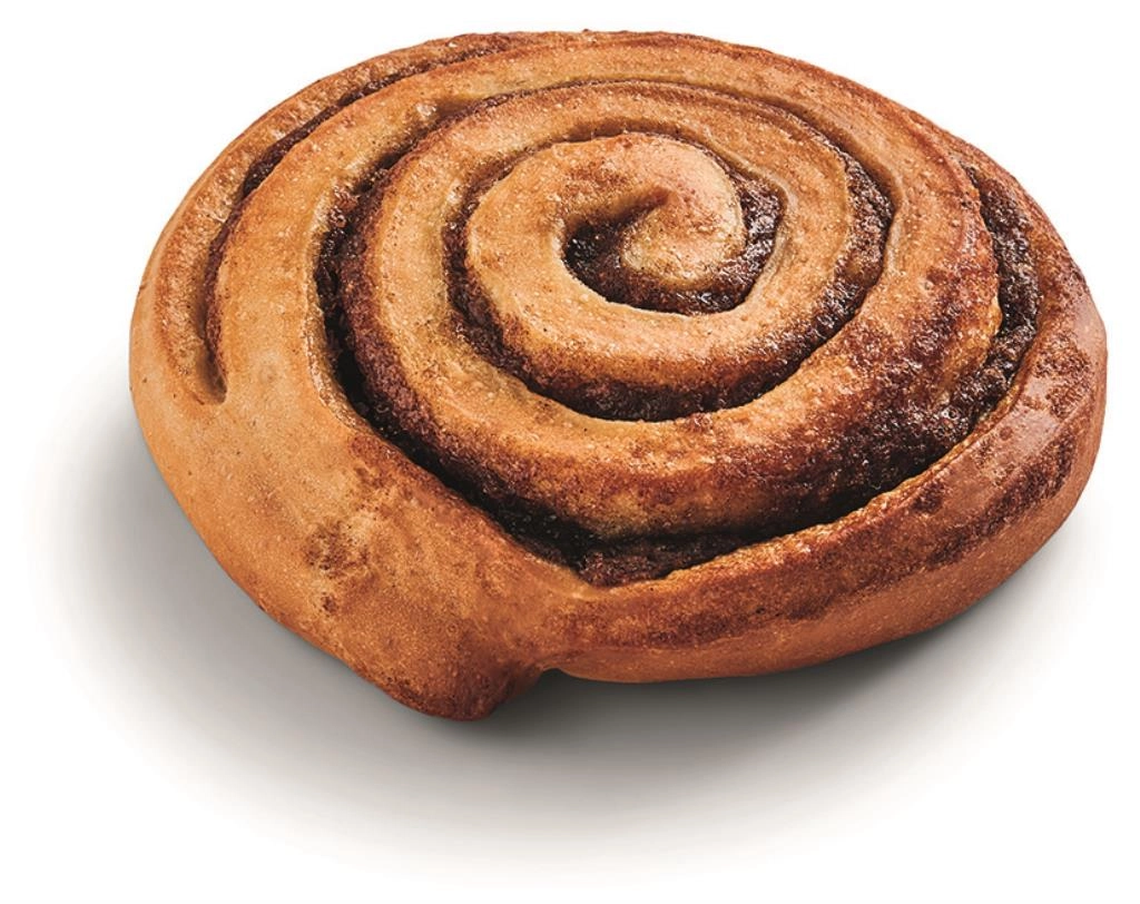 Rollo de canela danés, que al hornearse toma un bonito color dorado. ± Ø 11 x 3 cm