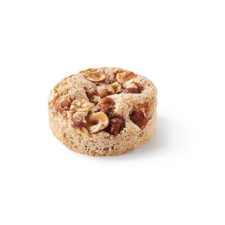 Bizcocho dacquoise de avellana con trocitos de chocolate. ±Ø 6 x 3 cm