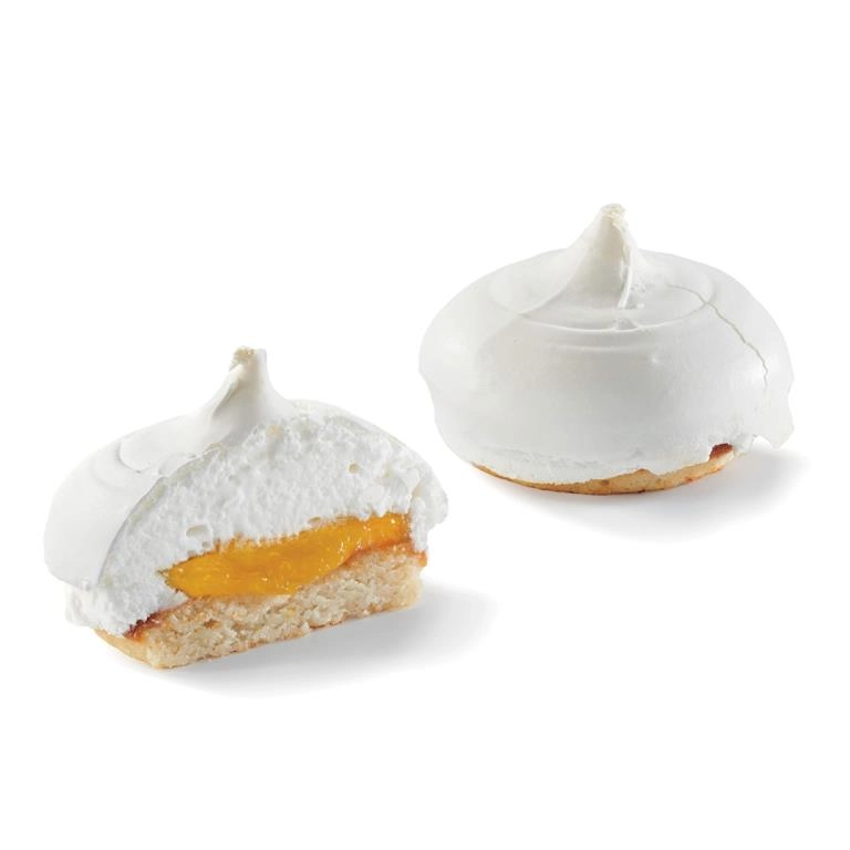 Base dacquoise, compota de cítricos (naranja, mandarina, zumo de limón, ralladura de lima y limón) merengue (blando por dentro) al horno.