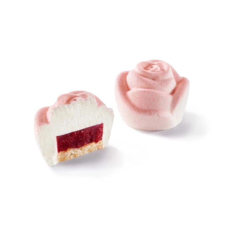 Bizcocho dacquoise de pistacho, compota de frutos rojos (frambuesa y grosella negra) y suave mousse de yogur búlgaro.