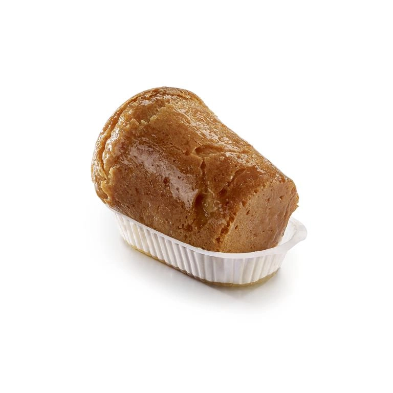 Babá bañado con sirope tradicional para que añada el alcohol de su elección. Masa de babá (tipo bizcocho) de elaboración lenta con fermentos y sin levadura artificial. ±9,5 X 5cm.