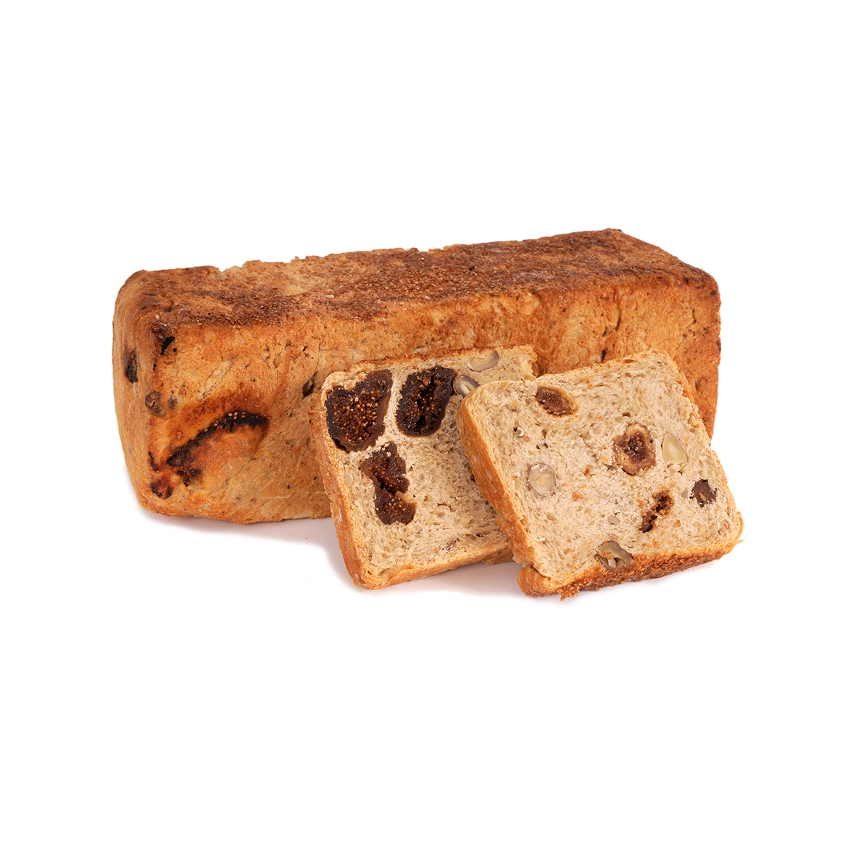 Harina semiintegral enriquecida con pipas de girasol y frutas enteras (higos turcos 14,5%, avellanas italianas 5% y almendras de California 5%). ±27 x 9,5 x 9,5 cm